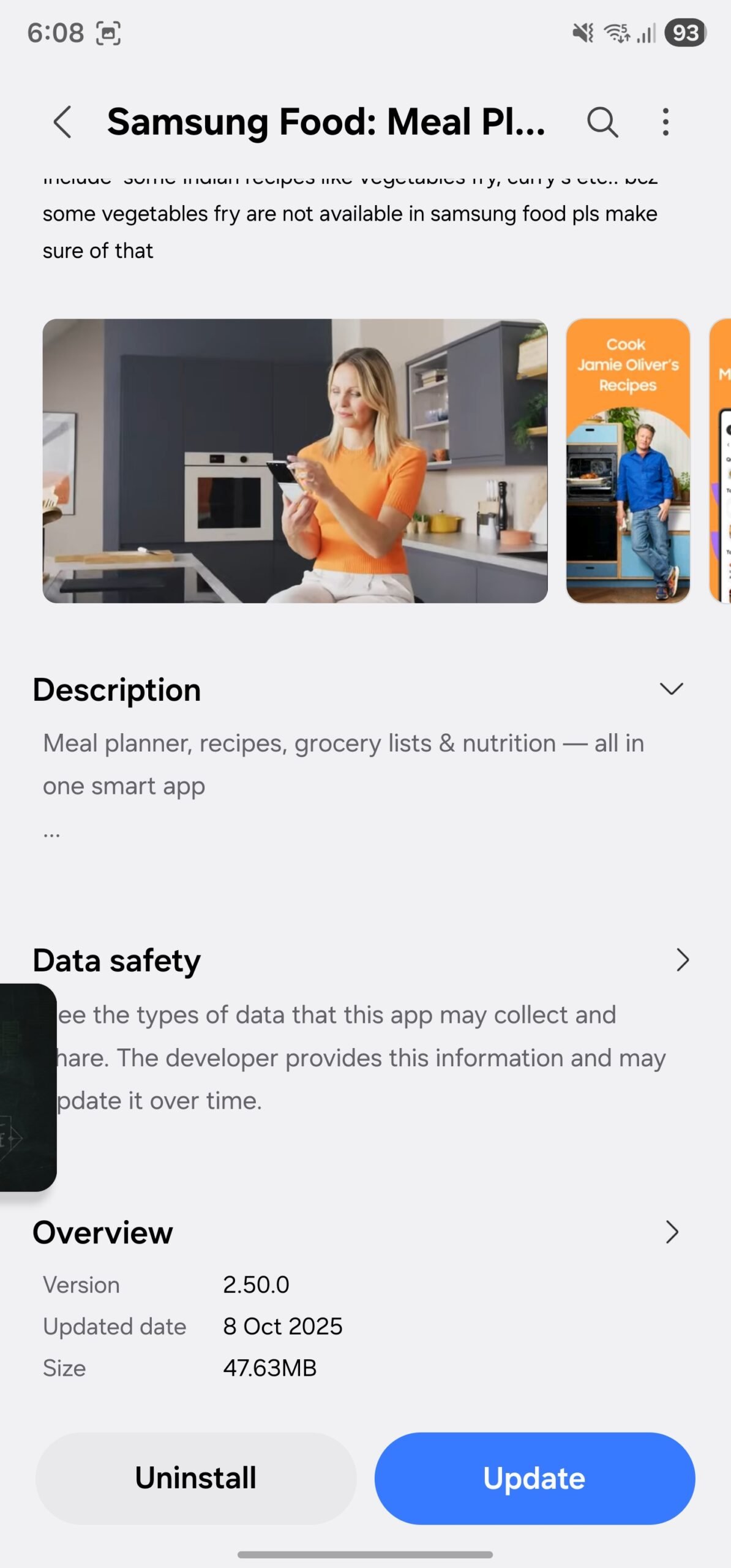 ویرایش دستور پخت در سامسونگ فود سادهتر شد؛ تکمیل خودکار مواد اولیه فعال شد